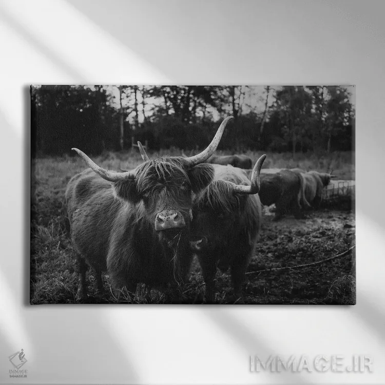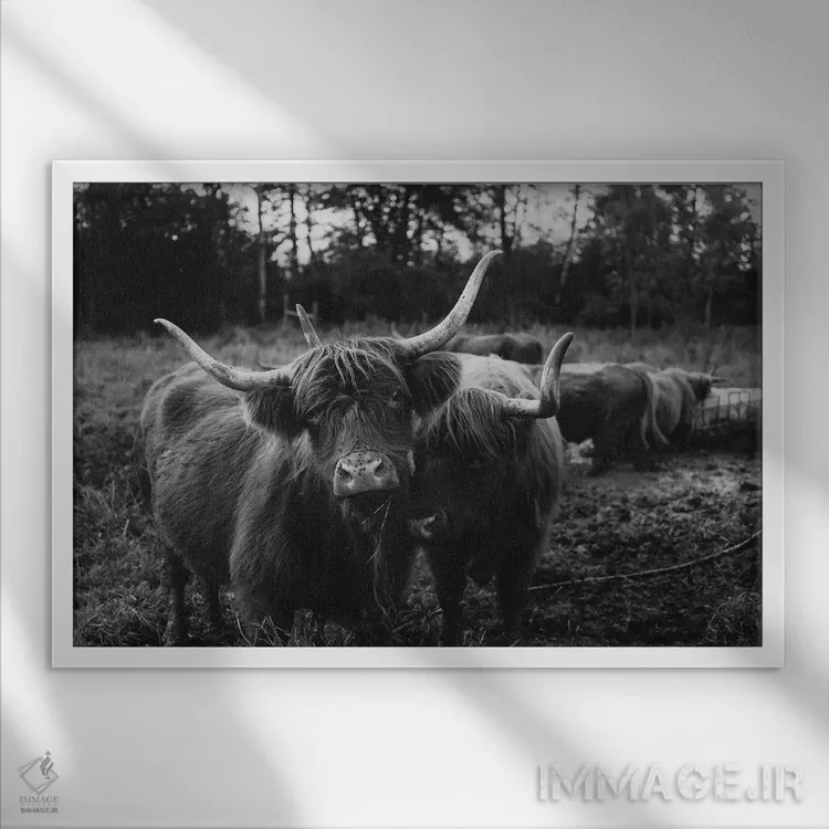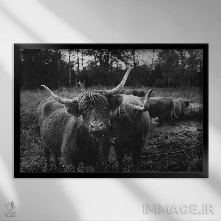 تابلو گاوهای هایلند سیاه و سفید اثر چلسیا ویکتوریا