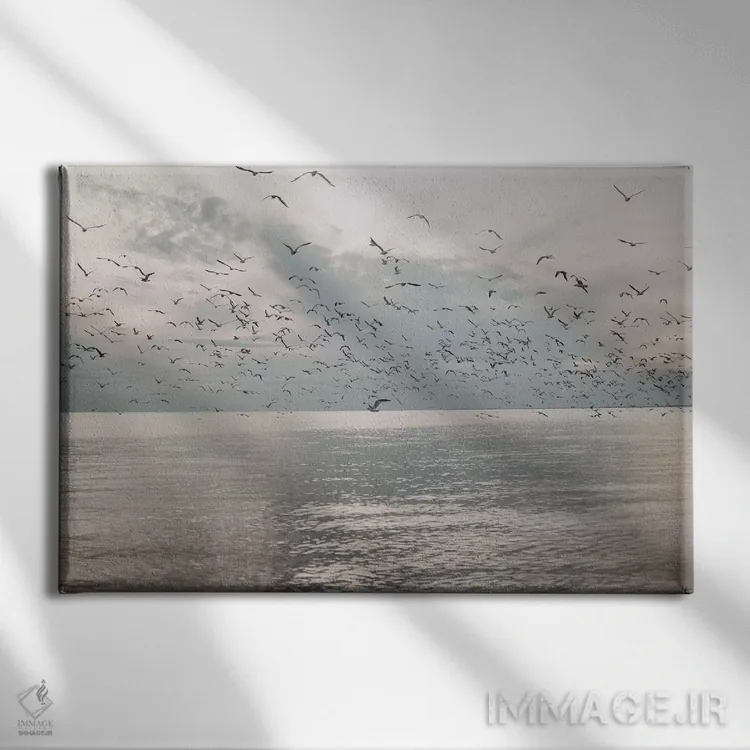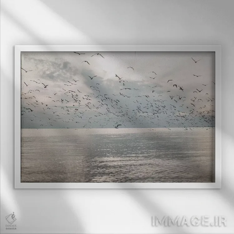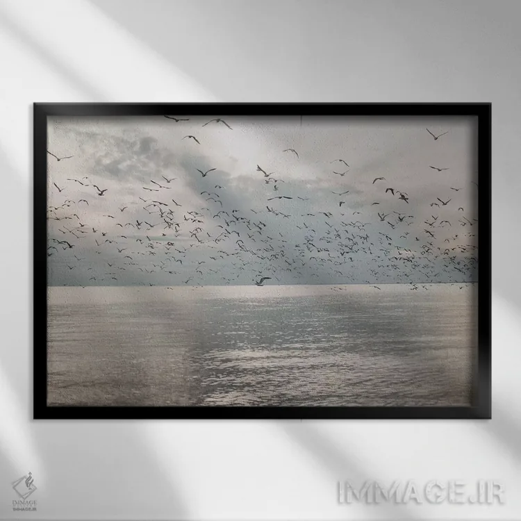 برای فضایی که میخواهید مرتبتر و حرفهایتر دیده شود، «مرغان دریایی بر فراز دریا» اثرِ «چلسیا ویکتوریا» یک «نقطهٔ مکث» خوشسلیقه میسازد؛ برای دیوار بالای کنسول یا شومینه پیشنهاد میشود. به فضا حس «گالری خانگی» میدهد، بدون اینکه اغراق کند.