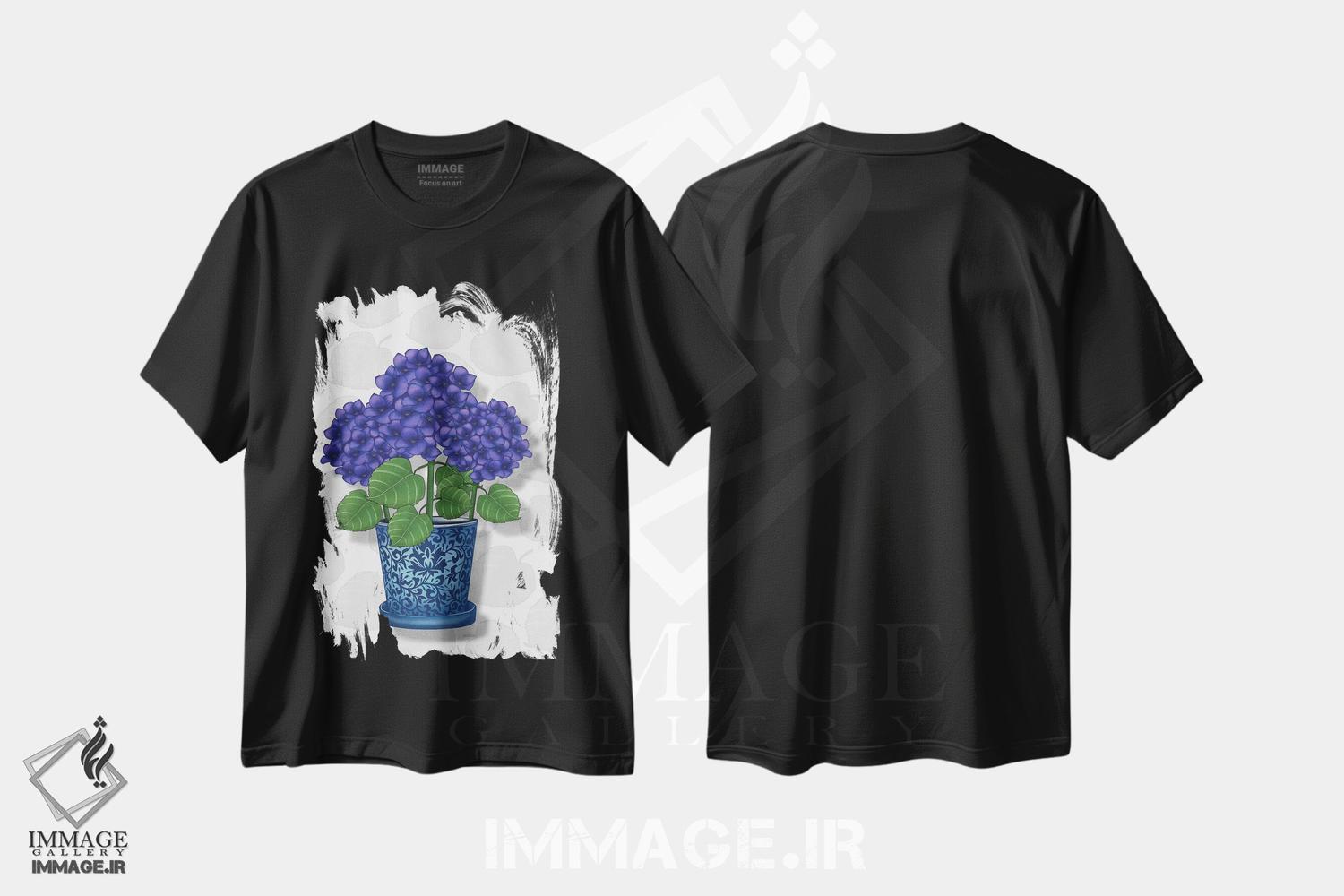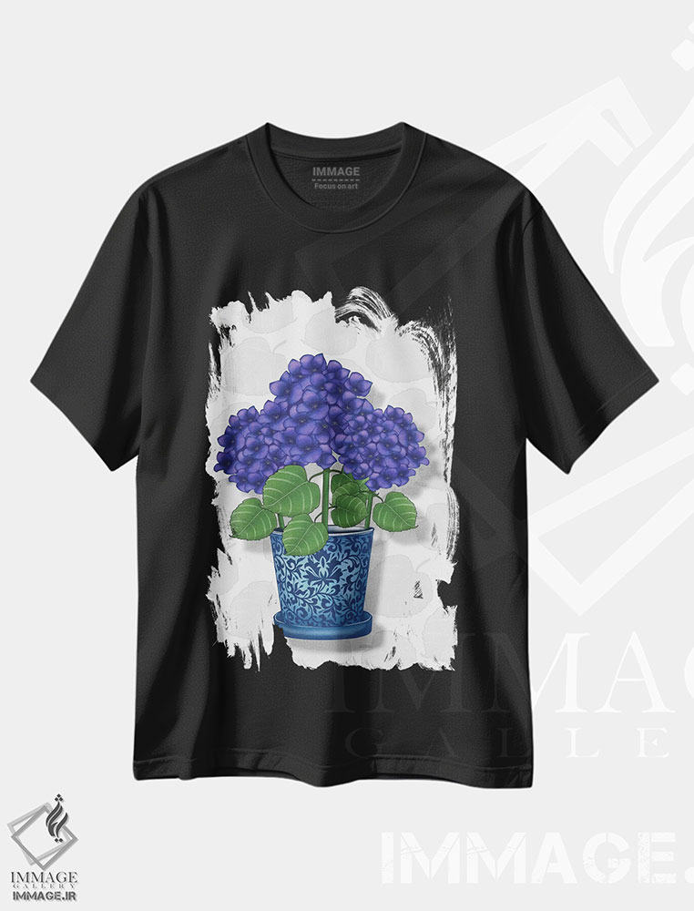 تیشرت طرح دار گلدان آبی با ادریسی های بنفش اثر آن هاچینسون