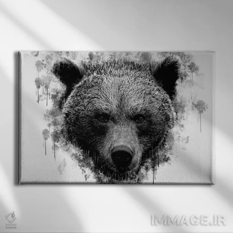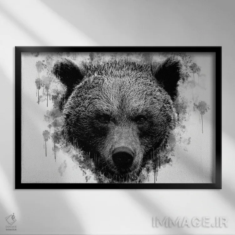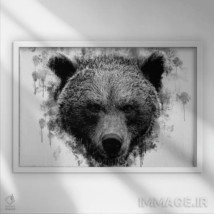 تابلو سر خرس قهوه‌ای در سیاه و سفید اثر کورنل ولاد