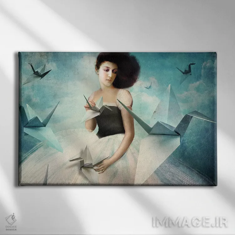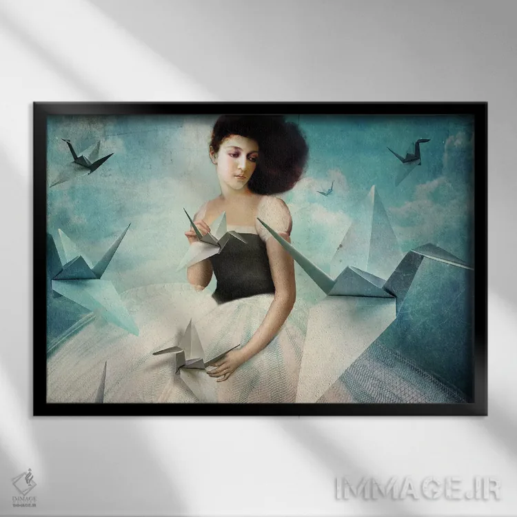 در «اولین درنای اُریگامی من» اثرِ «کاترین ولز—استاین (هنرمند فتومانتیج آلمانی)»، حضور حیوانات حس طبیعت را بیدغدغه وارد خانه میکند؛ برای فضاهای روستیک یا بوهو انتخابی خوشسلیقه است. در کنار گیاهان و نور طبیعی، جذابتر هم میشود.