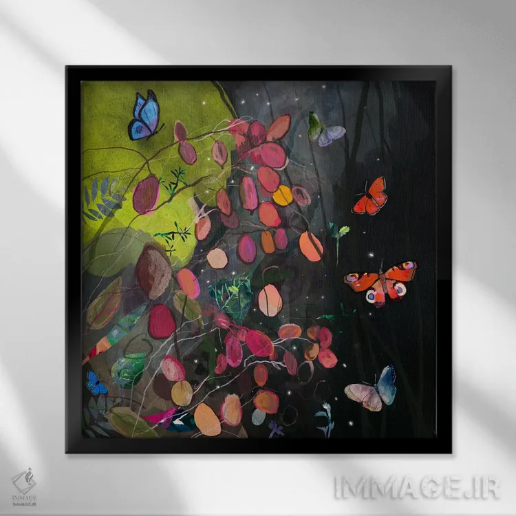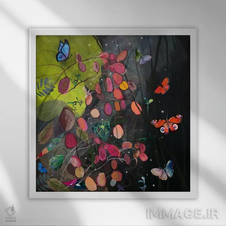 براساس پالت ترکیبی اثر، قاب تیک گرم (چوبی) پیشنهاد اول است و مشکی مات (فریم متوسط) مکمل. برای سفارشهای پروژهای با ابعاد و قابهای اختصاصی با ایماژ در تماس باشید.