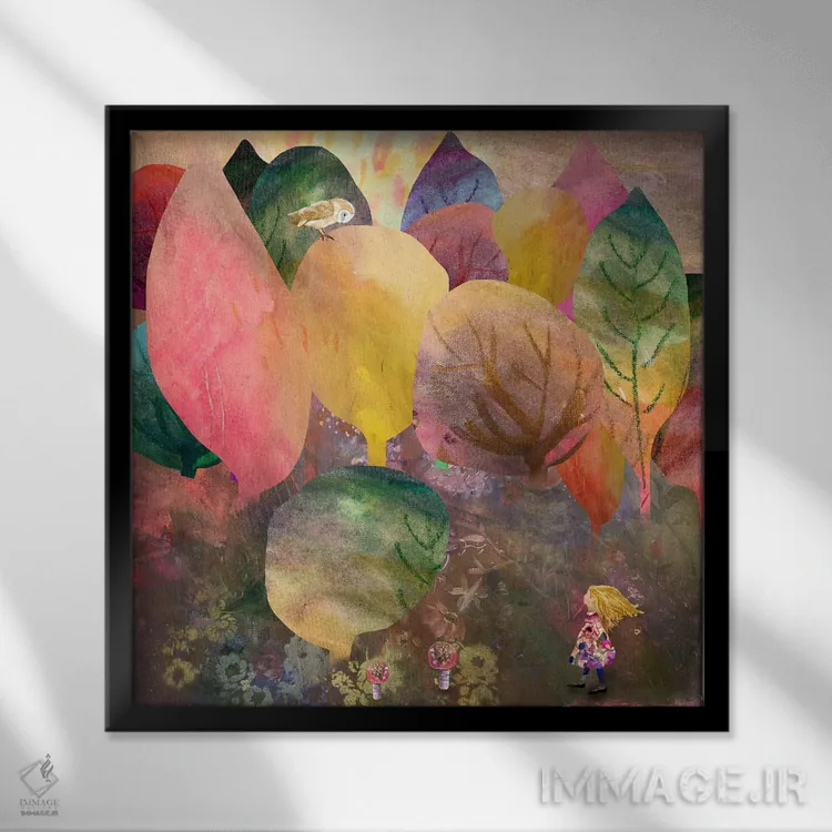 براساس پالت گرم اثر، قاب تیک گرم (چوبی) پیشنهاد اول است و مشکی مات (فریم متوسط) مکمل. برای سفارشهای پروژهای با ابعاد و قابهای اختصاصی با ایماژ در تماس باشید.