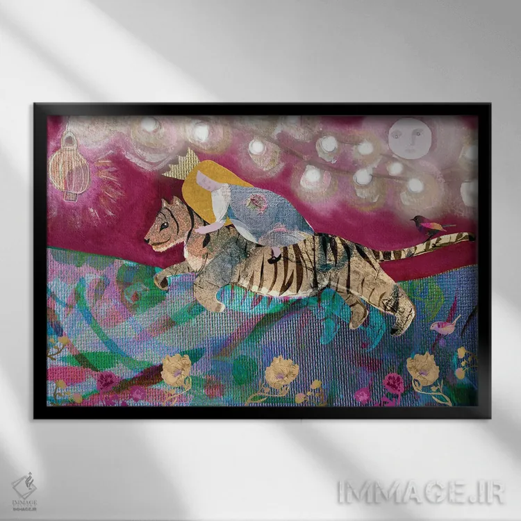 براساس پالت ترکیبی اثر، قاب تیک گرم (چوبی) پیشنهاد اول است و مشکی مات (فریم متوسط) مکمل. برای سفارشهای پروژهای با ابعاد و قابهای اختصاصی با ایماژ در تماس باشید.