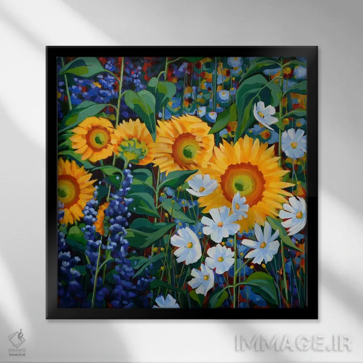 «آفتابگردانها و دوستان» اثرِ «سیندی کافمن» با حالوهوای دکور معاصر و موضوعِ این اثر، برای نشیمنهای امروزی و چیدمانهای ساده انتخابی دقیق است.