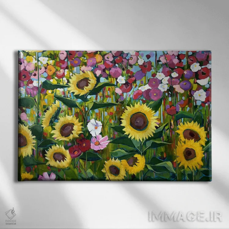 براساس پالت ترکیبی اثر، قاب تیک گرم (چوبی) پیشنهاد اول است و مشکی مات (فریم متوسط) مکمل. برای سفارشهای پروژهای با ابعاد و قابهای اختصاصی با ایماژ در تماس باشید.