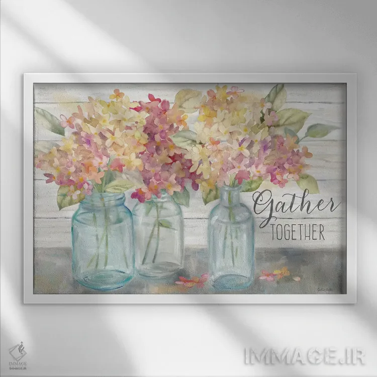 برای دیواری که میخواهید نرمتر دیده شود، «هورتانسیاهای خانه روستایی در شیشههای میسون ادویه—جمعآوری» اثرِ «سینتیا کولتر» جزئیات نزدیک را چشمنواز نشان میدهد؛ برای دکورهای اسکانباوراوی انتخابی خوشسلیقه است. با قاب روشن یا چوبی، حس طبیعیتری پیدا میکند.