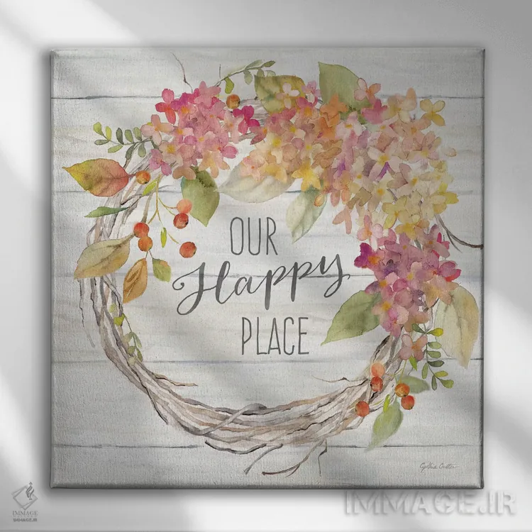 «حلقه گل هورتانسیا خانه روستایی ادویه II—جای خوشبختی» اثرِ «سینتیا کولتر» میتواند در کنار چوب و پارچههای روشن، عالی مینشیند؛ برای فضای غذاخوری پیشنهاد شود. اگر دنبال «زیباییِ بیصدا» هستید، این اثر همان حس را دارد.