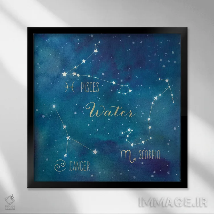 تابلو برج آبی (صورت فلکی عنصر آب) اثر سینتیا کولتر - نمای قاب‌دار مشکی
