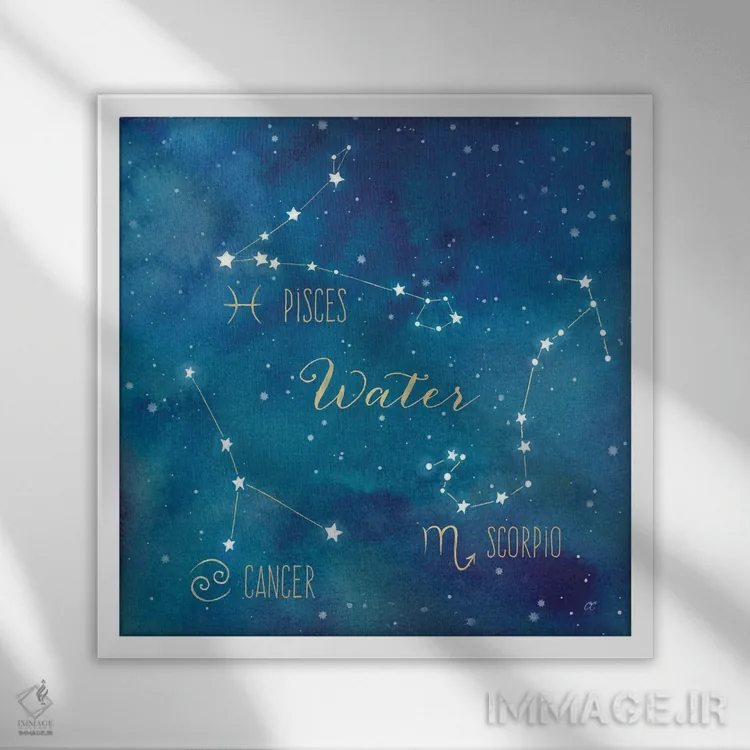 تابلو برج آبی (صورت فلکی عنصر آب) اثر سینتیا کولتر - نمای قاب‌دار سفید