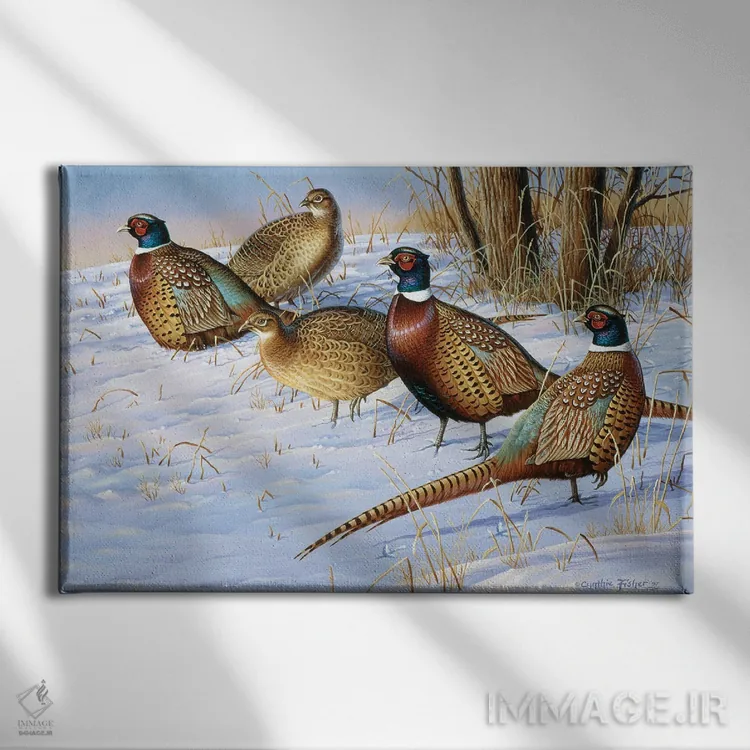 اگر به آثار حیوانات علاقه دارید، «پنج قرقاول در برف» اثرِ «سنتی فیشر» به دیوار، انرژیِ نرم و زنده میدهد، برای راهروها و ورودیهای گرم گزینهٔ مناسبیست. با قاب چوبی یا مشکی، حس مرتبتری پیدا میکند.