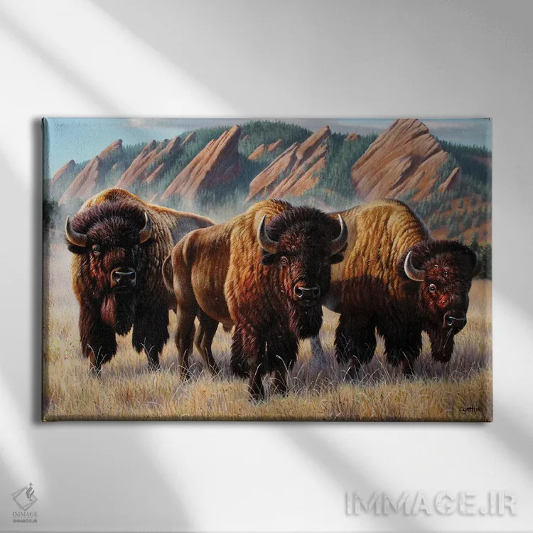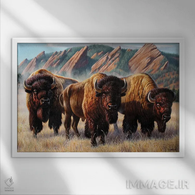 تابلو دکوراتیو سه گاومیش کوهان دار در فلات آیرونز اثر سنتی فیشر