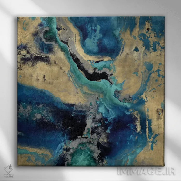 تابلو انتزاعی سنگ با آبی و طلایی اثر دنیل کارسون
