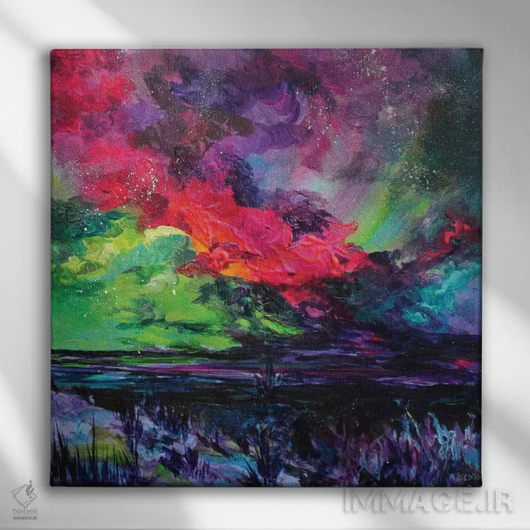 براساس پالت ترکیبی اثر، قاب تیک گرم (چوبی) پیشنهاد اول است و مشکی مات (فریم متوسط) مکمل. برای سفارشهای پروژهای با ابعاد و قابهای اختصاصی با ایماژ در تماس باشید.