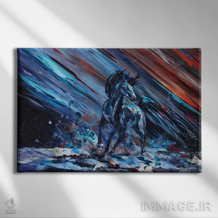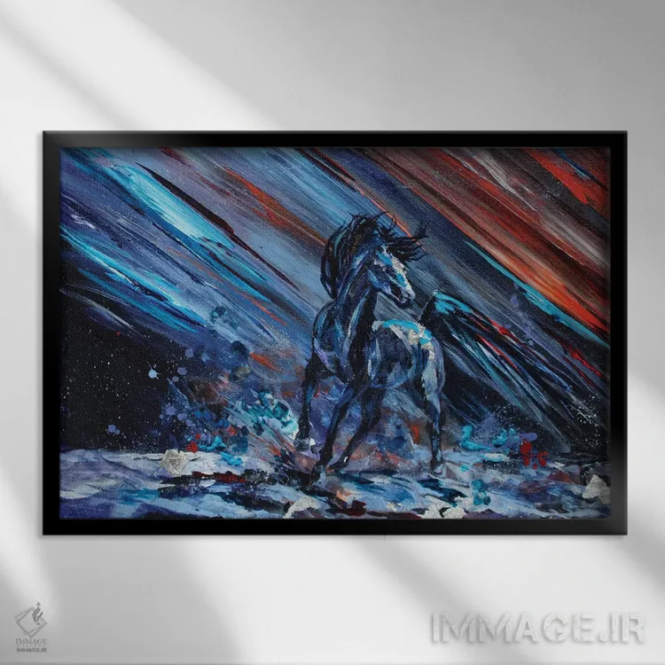 براساس پالت ترکیبی اثر، قاب تیک گرم (چوبی) پیشنهاد اول است و مشکی مات (فریم متوسط) مکمل. برای سفارشهای پروژهای با ابعاد و قابهای اختصاصی با ایماژ در تماس باشید.