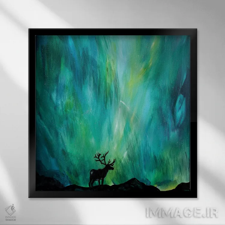 تابلو دکوراتیو گوزن شمالی زیر شفق قطبی اثر لیندزی دال