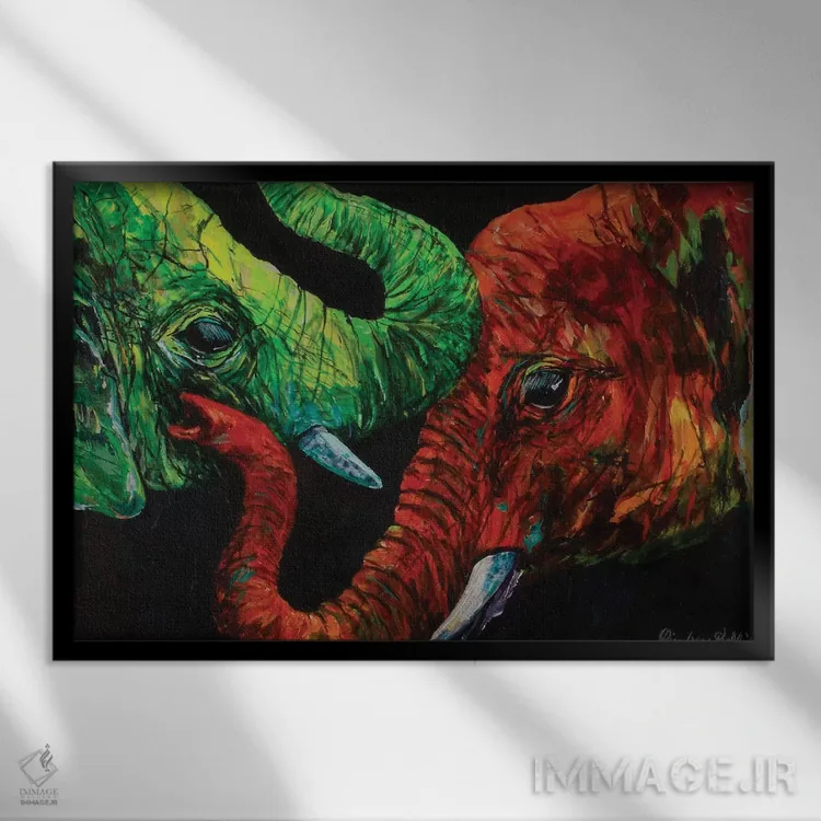براساس پالت ترکیبی اثر، قاب تیک گرم (چوبی) پیشنهاد اول است و مشکی مات (فریم متوسط) مکمل. برای سفارشهای پروژهای با ابعاد و قابهای اختصاصی با ایماژ در تماس باشید.