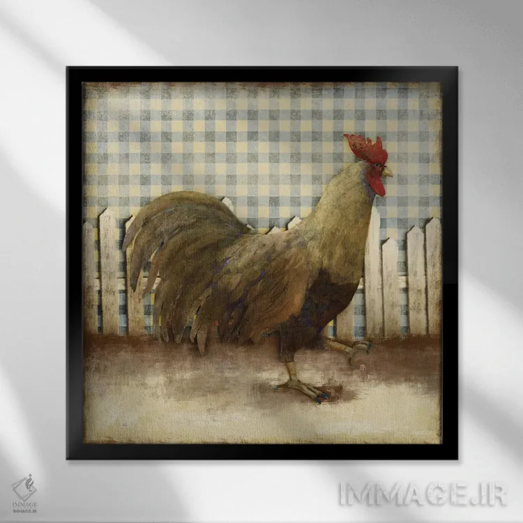 این اثر با عنوان «خروس روی پارچهٔ دمسک I» اثرِ «دن منیلی» بافت و جزئیات را طوری نشان میدهد که نگاه میماند؛ برای اتاق کودک (بدون لحن کودکانه) انتخابی خوشسلیقه است. به دیوار، قصه میدهد—اما قصهای آرام و شیک.