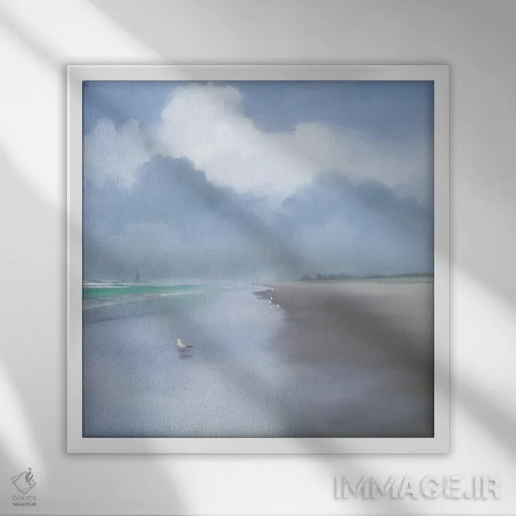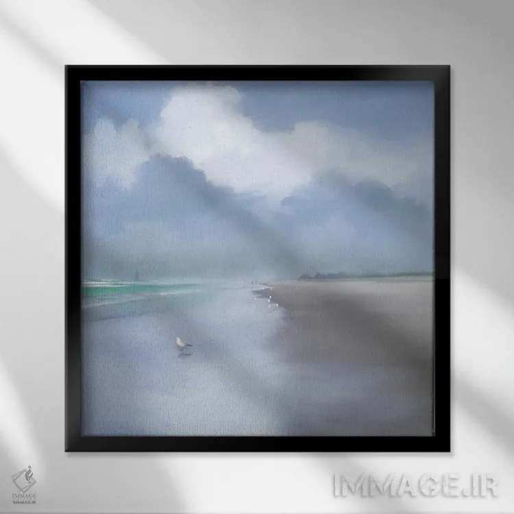 براساس پالت سرد اثر، قاب سفید مات (فریم باریک) پیشنهاد اول است و نقرهای برسخورده (متالیک) مکمل. برای سفارشهای پروژهای با ابعاد و قابهای اختصاصی با ایماژ در تماس باشید.