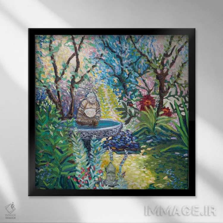 براساس پالت ترکیبی اثر، قاب تیک گرم (چوبی) پیشنهاد اول است و مشکی مات (فریم متوسط) مکمل. برای سفارشهای پروژهای با ابعاد و قابهای اختصاصی با ایماژ در تماس باشید.