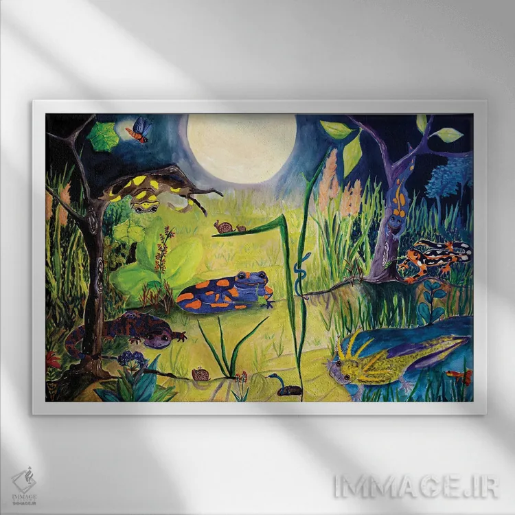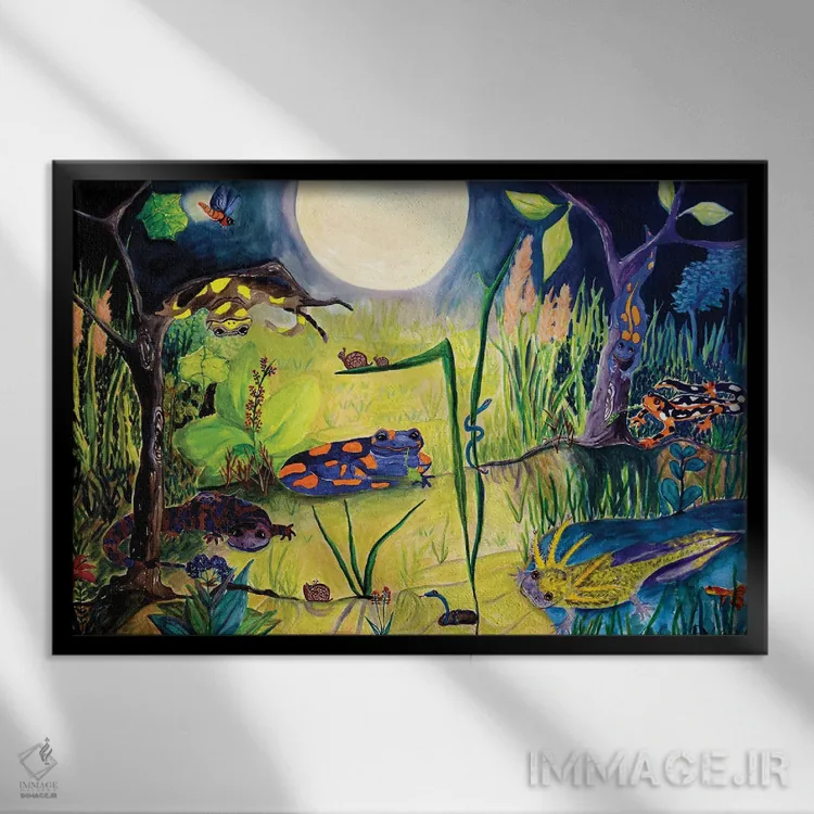براساس پالت ترکیبی اثر، قاب تیک گرم (چوبی) پیشنهاد اول است و مشکی مات (فریم متوسط) مکمل. برای سفارشهای پروژهای با ابعاد و قابهای اختصاصی با ایماژ در تماس باشید.