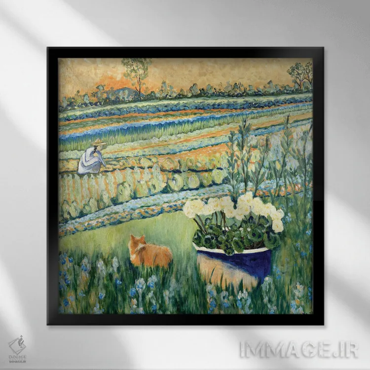 براساس پالت ترکیبی اثر، قاب تیک گرم (چوبی) پیشنهاد اول است و مشکی مات (فریم متوسط) مکمل. برای سفارشهای پروژهای با ابعاد و قابهای اختصاصی با ایماژ در تماس باشید.