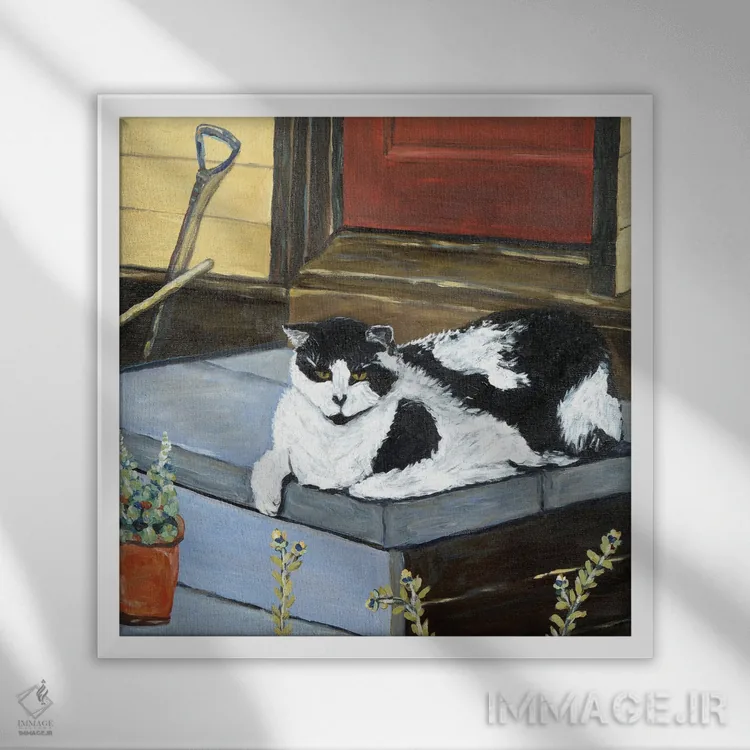 «گربهٔ همسایه» اثرِ «دبورا ایو آلاسترا» میتواند به دیوار، انرژیِ نرم و زنده بدهد؛ برای راهروها و ورودیهای گرم پیشنهاد میشود. هر بار نگاهش میکنید، یک جزئیات تازه به چشم میآید.