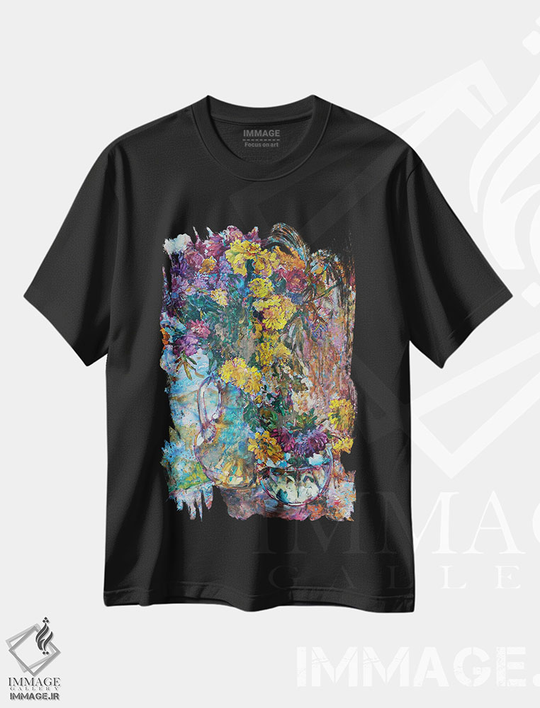تیشرت طرح دار طبیعت بی جان با گل های پاییزی اثر اندریی کوتساچنکو