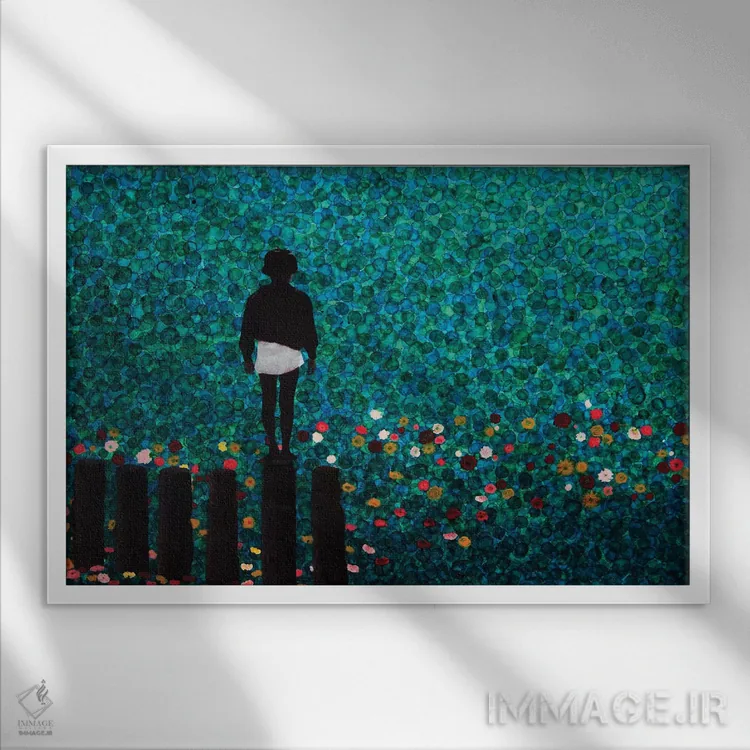 براساس پالت ترکیبی اثر، قاب تیک گرم (چوبی) پیشنهاد اول است و مشکی مات (فریم متوسط) مکمل. برای سفارشهای پروژهای با ابعاد و قابهای اختصاصی با ایماژ در تماس باشید.