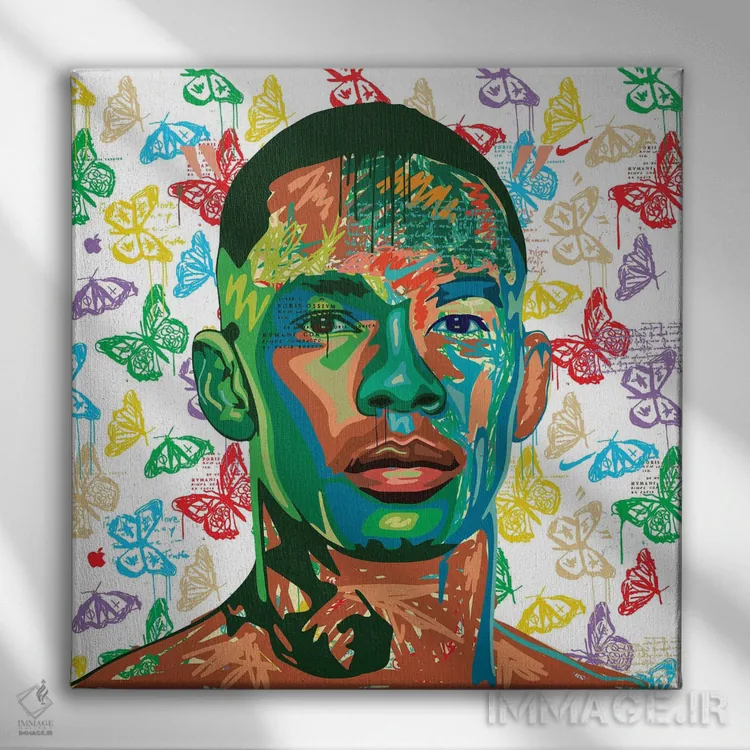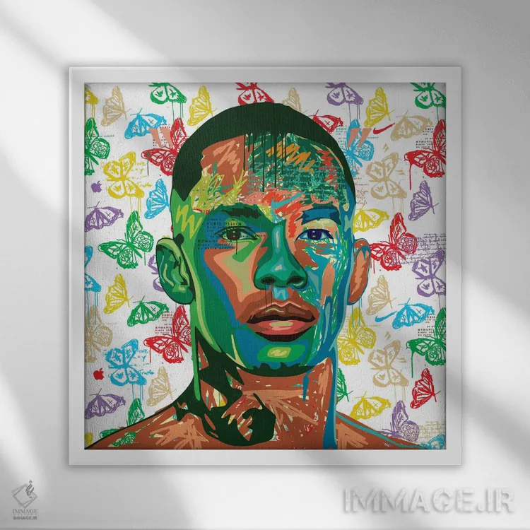 اگر میخواهید دیوار کمی سرزندگیِ محترمانه داشته باشد، «استایل بندر UFC (ورزشکار)» اثرِ «دای کریس آرت (هنرمند)» به دیوار، انرژیِ نرم و زنده میدهد، برای دکورهایی با رنگهای خنثی گزینهٔ مناسبیست. با نورپردازی نقطهای، جذابتر هم میشود.