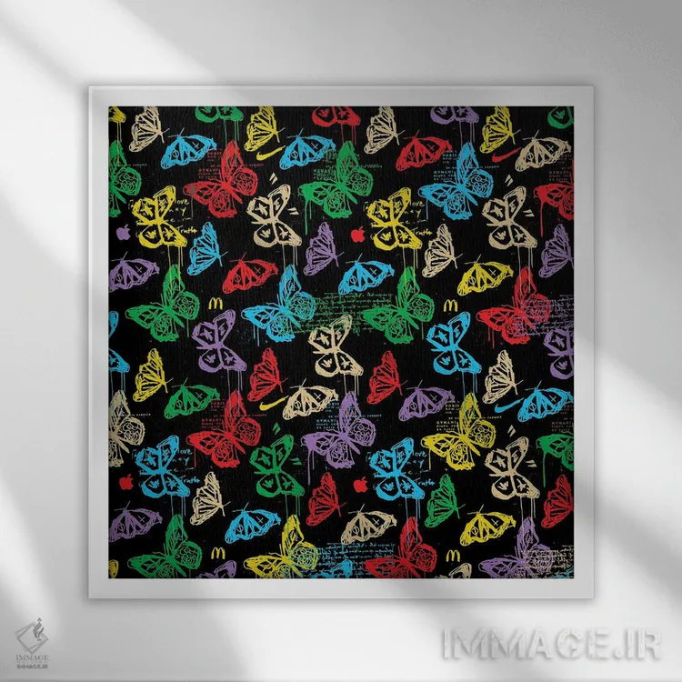 تابلو طرح آیکون پروانه (سیاه رنگارنگ) اثر دای کریس آرت (هنرمند)