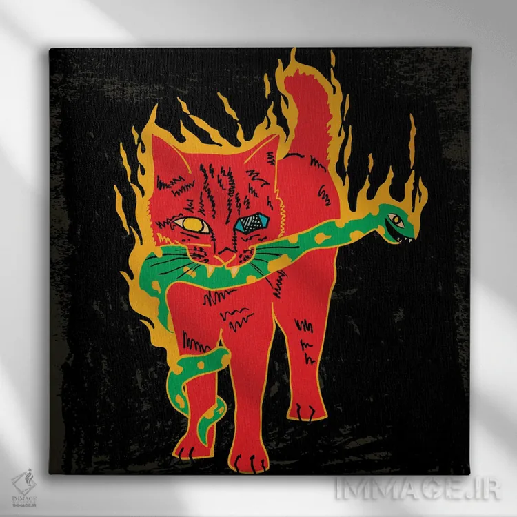 تابلو گربه و مار (شعله‌های زرد) اثر دای کریس آرت (هنرمند)
