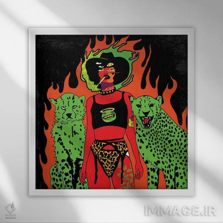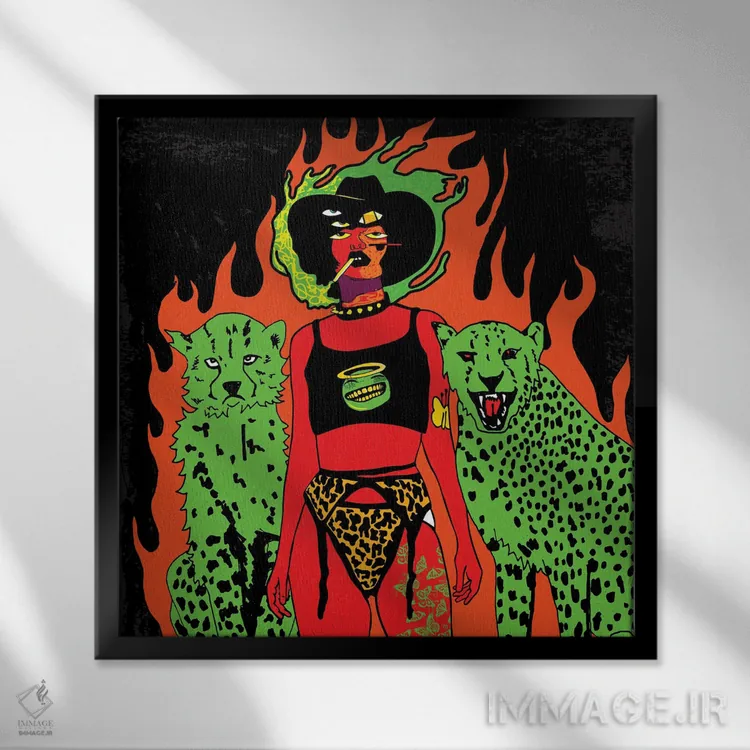 براساس پالت ترکیبی اثر، قاب تیک گرم (چوبی) پیشنهاد اول است و مشکی مات (فریم متوسط) مکمل. برای سفارشهای پروژهای با ابعاد و قابهای اختصاصی با ایماژ در تماس باشید.
