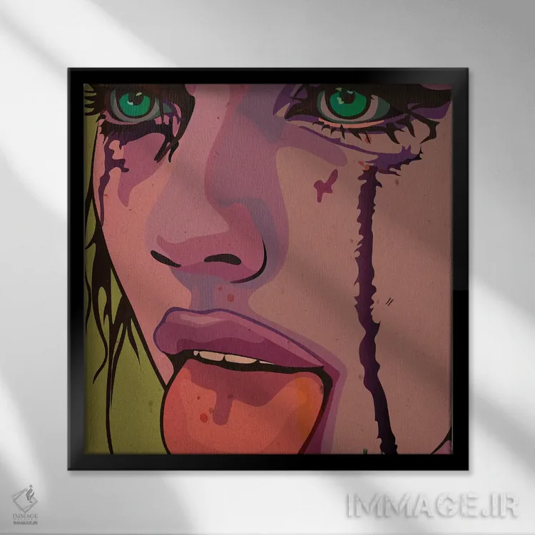 تابلو دختر ماسکارا با زبان بیرون اثر دای کریس آرت (هنرمند)