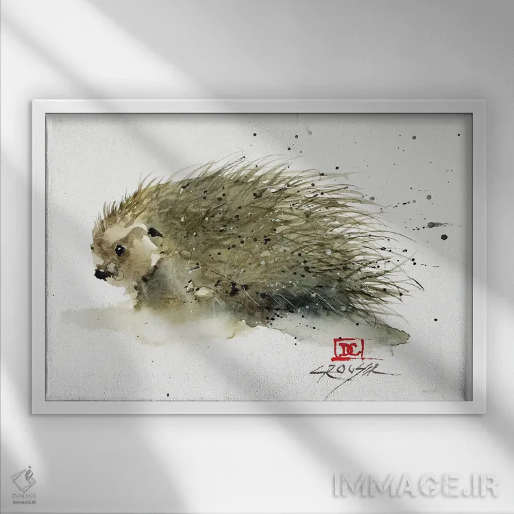 تابلو جوجه‌تیغی اثر باور کراوزر - نمای قاب‌دار سفید