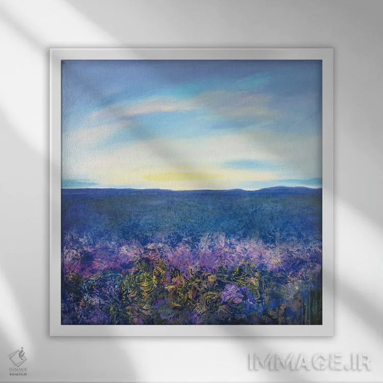 براساس پالت سرد اثر، قاب سفید مات (فریم باریک) پیشنهاد اول است و نقرهای برسخورده (متالیک) مکمل. برای سفارشهای پروژهای با ابعاد و قابهای اختصاصی با ایماژ در تماس باشید.