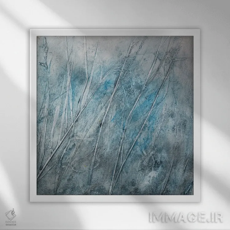 براساس پالت سرد اثر، قاب سفید مات (فریم باریک) پیشنهاد اول است و نقرهای برسخورده (متالیک) مکمل. برای سفارشهای پروژهای با ابعاد و قابهای اختصاصی با ایماژ در تماس باشید.