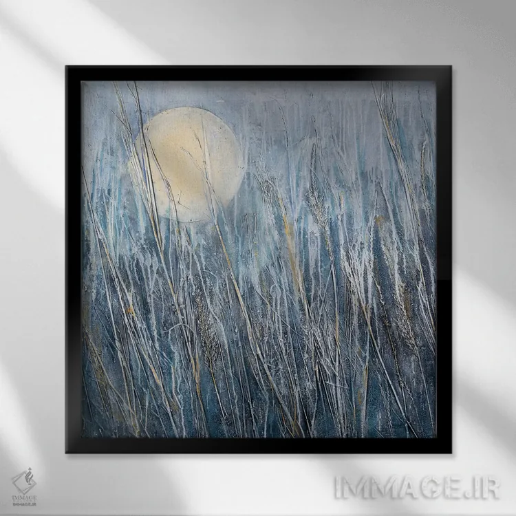 براساس پالت سرد اثر، قاب سفید مات (فریم باریک) پیشنهاد اول است و نقرهای برسخورده (متالیک) مکمل. برای سفارشهای پروژهای با ابعاد و قابهای اختصاصی با ایماژ در تماس باشید.