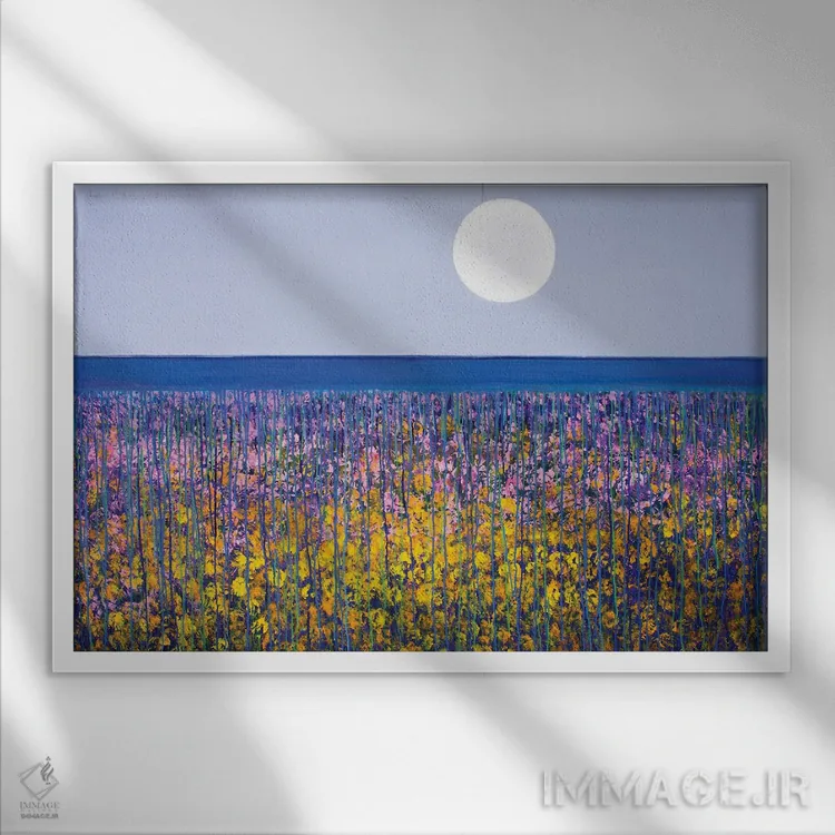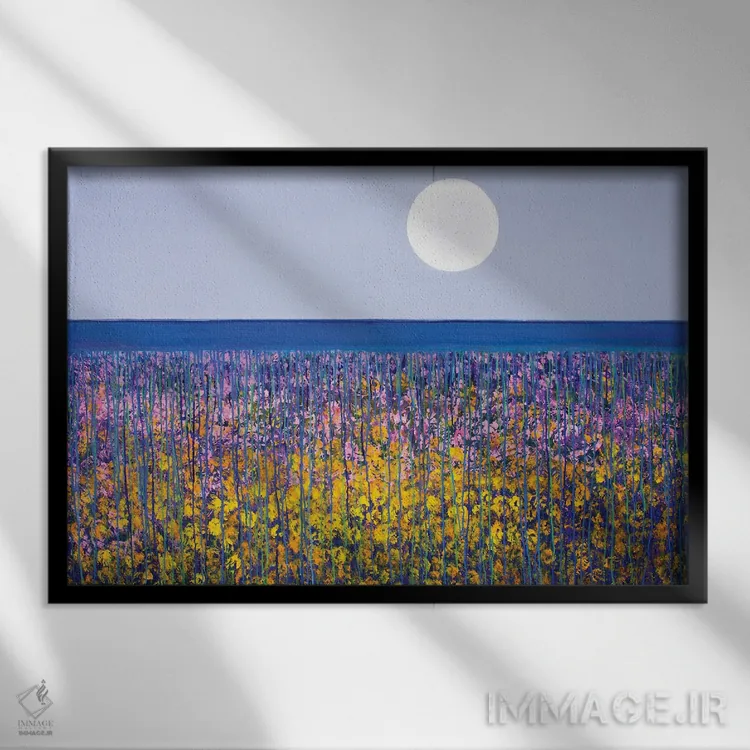 براساس پالت ترکیبی اثر، قاب تیک گرم (چوبی) پیشنهاد اول است و مشکی مات (فریم متوسط) مکمل. برای سفارشهای پروژهای با ابعاد و قابهای اختصاصی با ایماژ در تماس باشید.