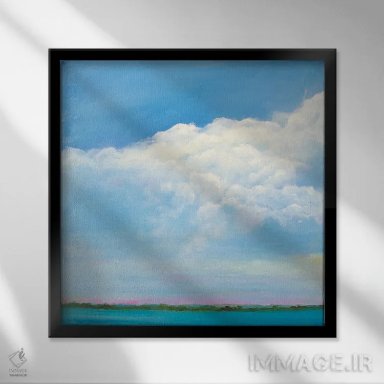 براساس پالت سرد اثر، قاب سفید مات (فریم باریک) پیشنهاد اول است و نقرهای برسخورده (متالیک) مکمل. برای سفارشهای پروژهای با ابعاد و قابهای اختصاصی با ایماژ در تماس باشید.