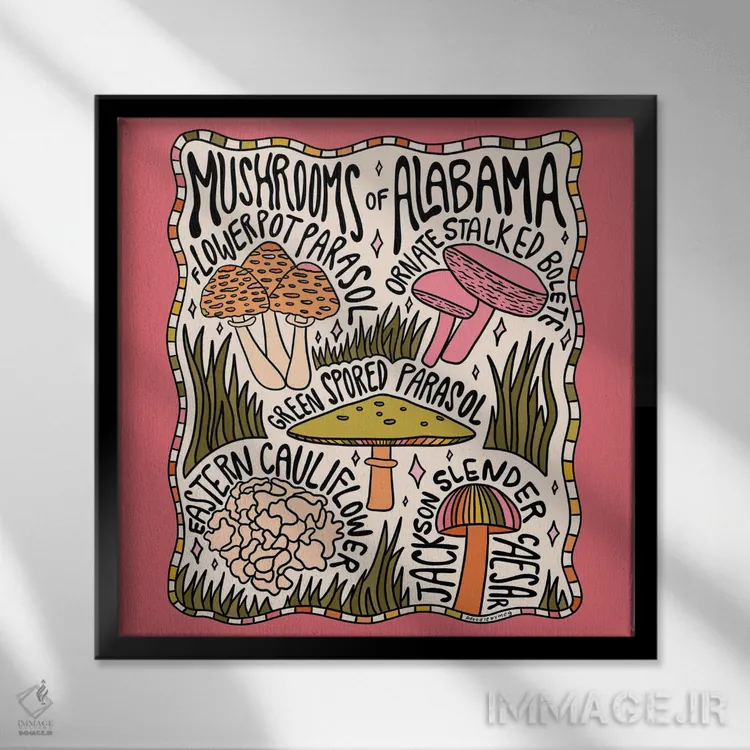 تابلو قارچ‌های آلاباما اثر دودل بای مگ (استودیوی هنری) - نمای قاب‌دار مشکی