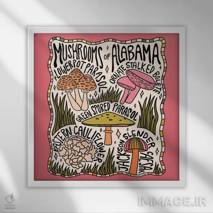 تابلو قارچ‌های آلاباما اثر دودل بای مگ (استودیوی هنری) - نمای قاب‌دار سفید