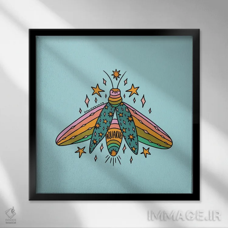 تابلو کرم شب‌تاب دلو اثر دودل بای مگ (استودیوی هنری) - نمای قاب‌دار مشکی