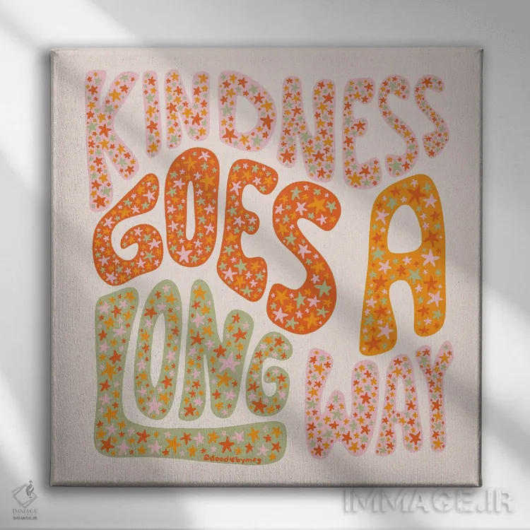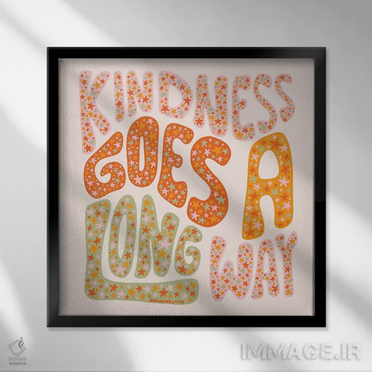 «مهربانی راه زیادی میرود (تاثیرگذار است)» اثرِ «دودل بای مگ (استودیوی هنری)» با زبان تایپوگرافی، پیام را ساده و مستقیم روی دیوار مینشاند؛ مناسب برای فضاهای مدرن و مینیمال.