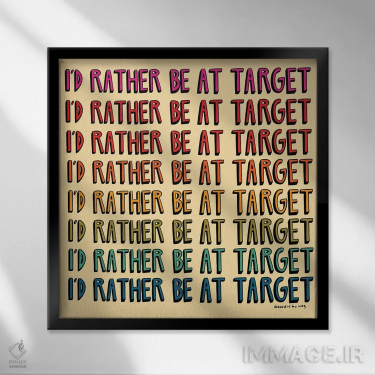 اگر دیوارِ راهرو یا گوشهی مطالعه نیاز به یک قاب خوشانرژی دارد، «ترجیح میدهم در فروشگاه تارگت باشم» اثرِ «دودل بای مگ (استودیوی هنری)» با تم این اثر گزینهی مناسبی است.