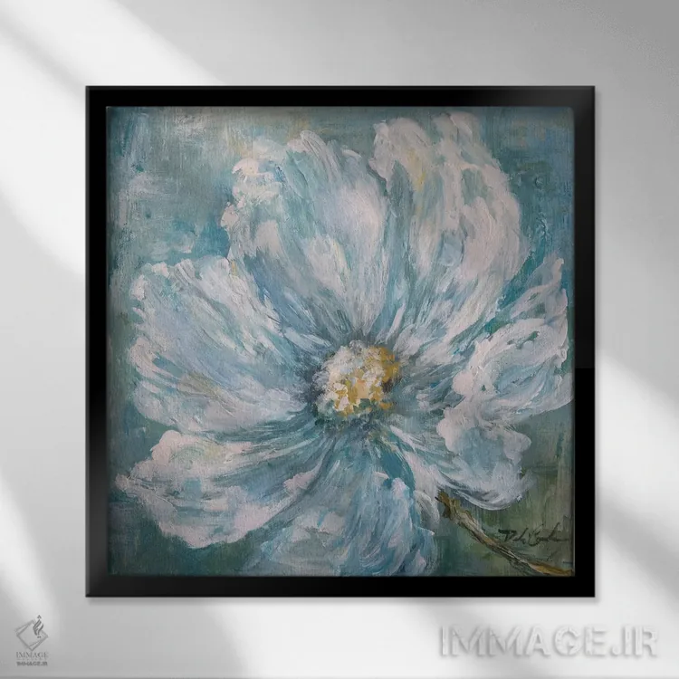 براساس پالت سرد اثر، قاب سفید مات (فریم باریک) پیشنهاد اول است و نقرهای برسخورده (متالیک) مکمل. برای سفارشهای پروژهای با ابعاد و قابهای اختصاصی با ایماژ در تماس باشید.