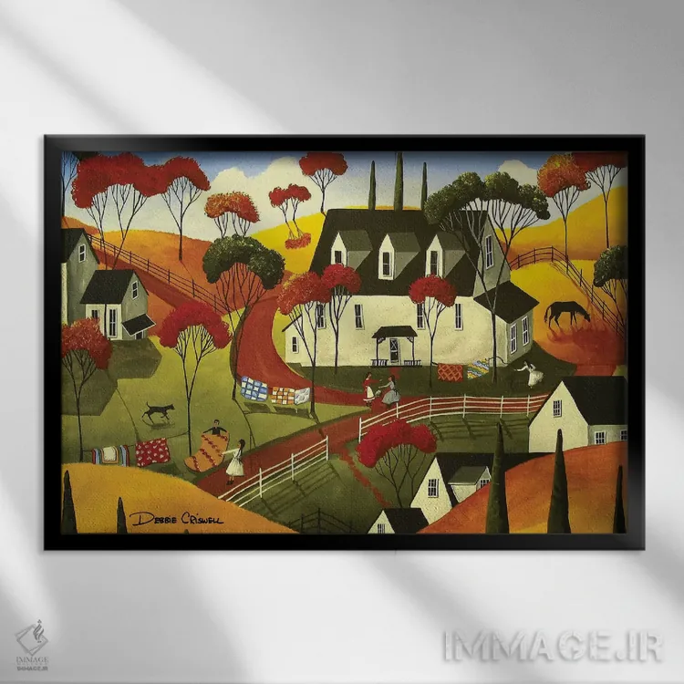 تابلو لحاف‌های روستایی اثر دبی کریسول - نمای قاب‌دار مشکی