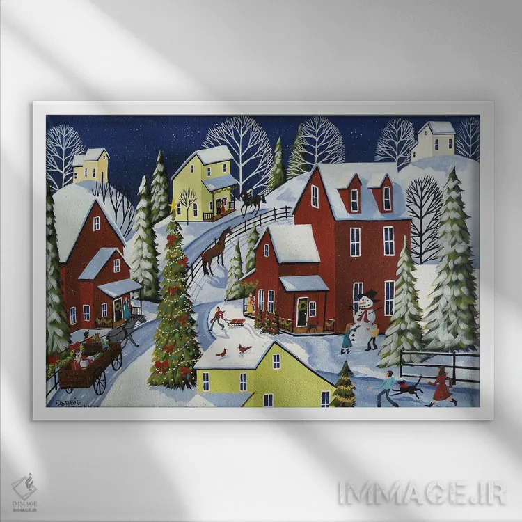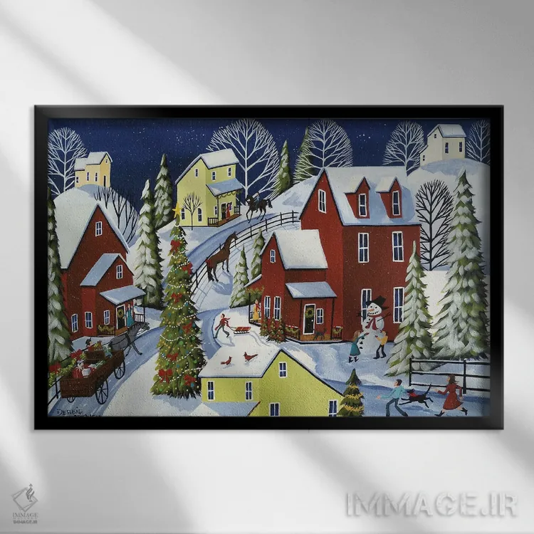 اگر به معماری و جزئیات سازه علاقه دارید، «کریسمس روستایی» اثرِ «دبی کریسول» حس معاصر و منظم به دکور بدهد، برای لابی و فضاهای رسمی گزینهٔ مناسبیست. با قاب مشکی مات، جلوهٔ تمیزتری پیدا میکند.