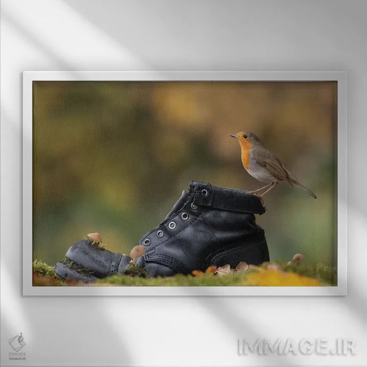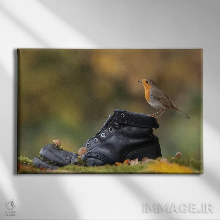 تابلو سینهسرخ پاییزی روی چکمهٔ کهنه اثر باور میسون