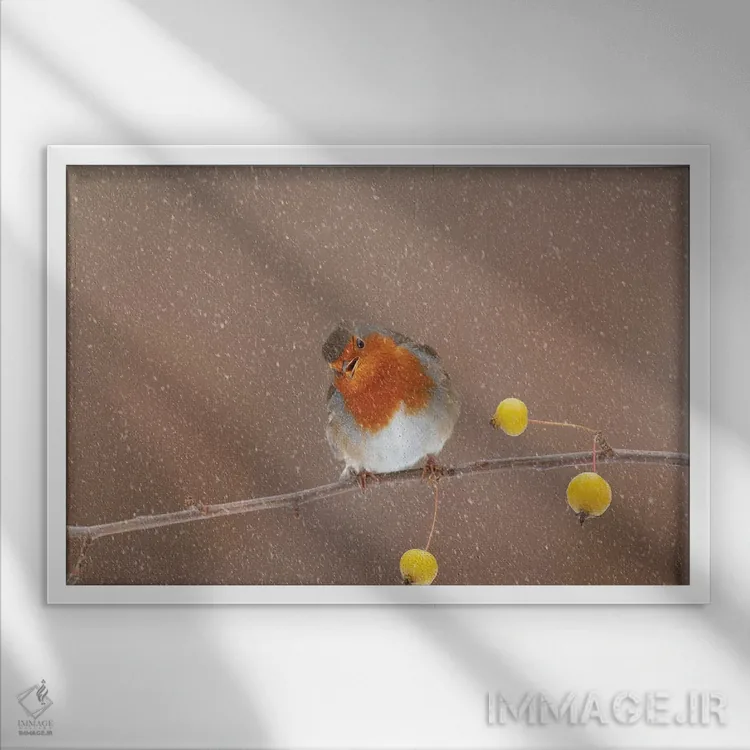 براساس پالت گرم اثر، قاب بلوط روشن (چوبی) پیشنهاد اول است و استخوانی ملایم مکمل. برای سفارشهای پروژهای با ابعاد و قابهای اختصاصی با ایماژ در تماس باشید.